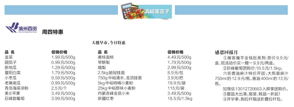 滨州百货 周四特惠