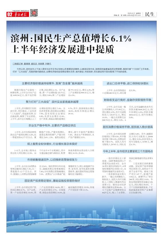 滨州:国民生产总值增长6.1% 上半年经济发展进中提质