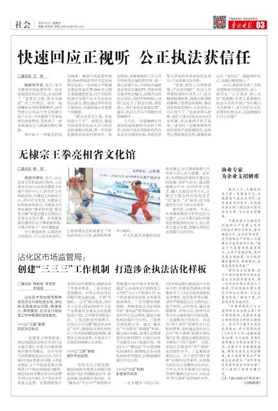 创建“三三三”工作机制 打造涉企执法沾化样板