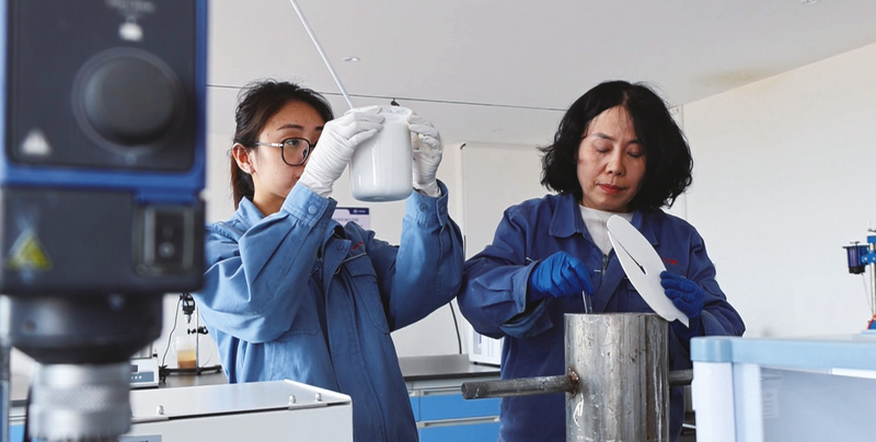 产业链协同创新赋能企业高效生产,而技术攻关则让产品更有竞争力。在中顺恒辉的实验室,科研人员正在调试新一代超细氢氧化铝微粉。这种粒径仅有500纳米的纳米材料,是新能源汽车充电线、光伏电缆和锂电池隔膜的关键阻燃剂.中顺恒辉(滨州)新材料有限公司首席工程师张蕾对记者说:“我们自主研发的复合法生产工艺,通过精准控制结晶条件,使产品堆比重、流动性全面优于国外同类产品。例如,我们的HC9000系列阻燃剂,在新能源锂电池隔膜应用中达到国际领先水平,成功替代进口产品。”
