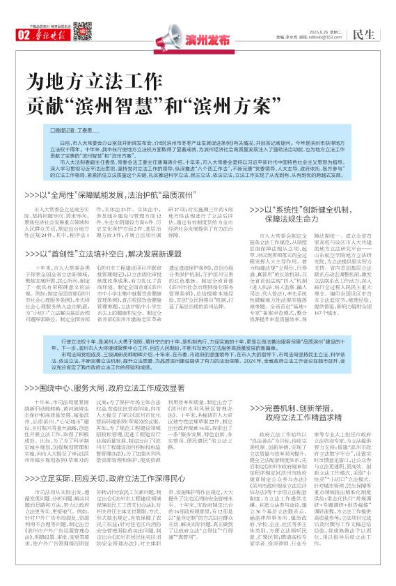 为地方立法工作 贡献“滨州智慧”和“滨州方案”