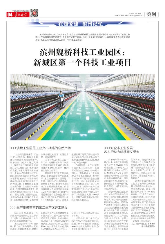 滨州魏桥科技工业园区:新城区第一个科技工业项目