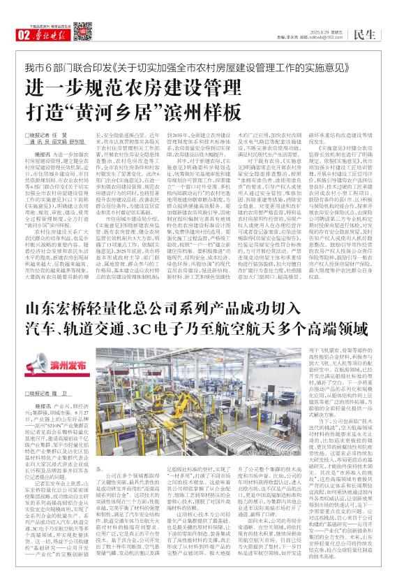 山东宏桥轻量化总公司系列产品成功切入 汽车、轨道交通、3C电子乃至航空航天多个高端领域
