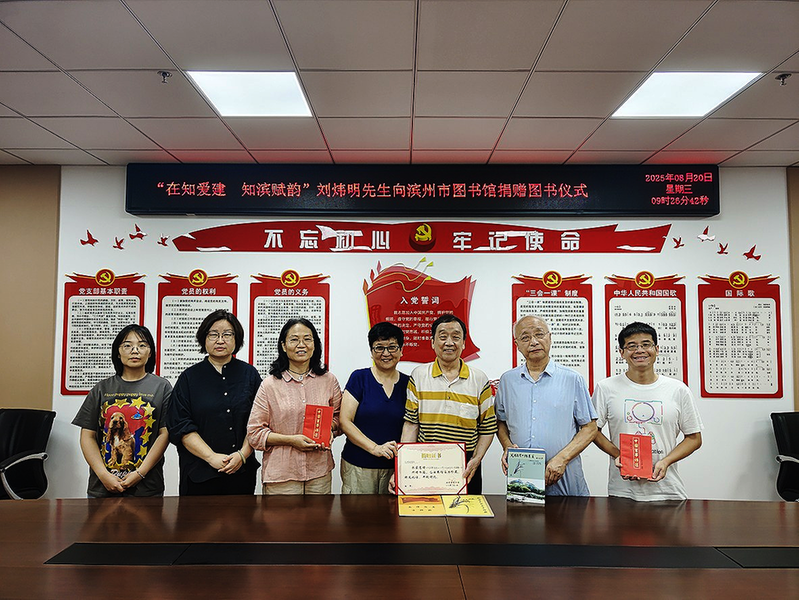 近日,市民刘炜明向滨州市图书馆捐赠了《中国军事诗选》《风雨年月一株蕙兰》,市图书馆为其颁发捐赠证书。