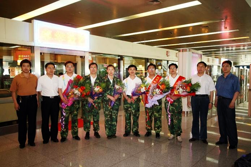 完成救援任务的牛晓春(左五)平安返回滨州 在扎实做好本职工作的同时,牛晓春始终怀揣强烈的社会责任与医者情怀。2008年5月,汶川大地震牵动全国人心。她主动请缨,作为滨州市卫生系统唯一一名女性医务工作者,毅然加入山东省第一批医疗救援队,奔赴四川抗震救灾一线。