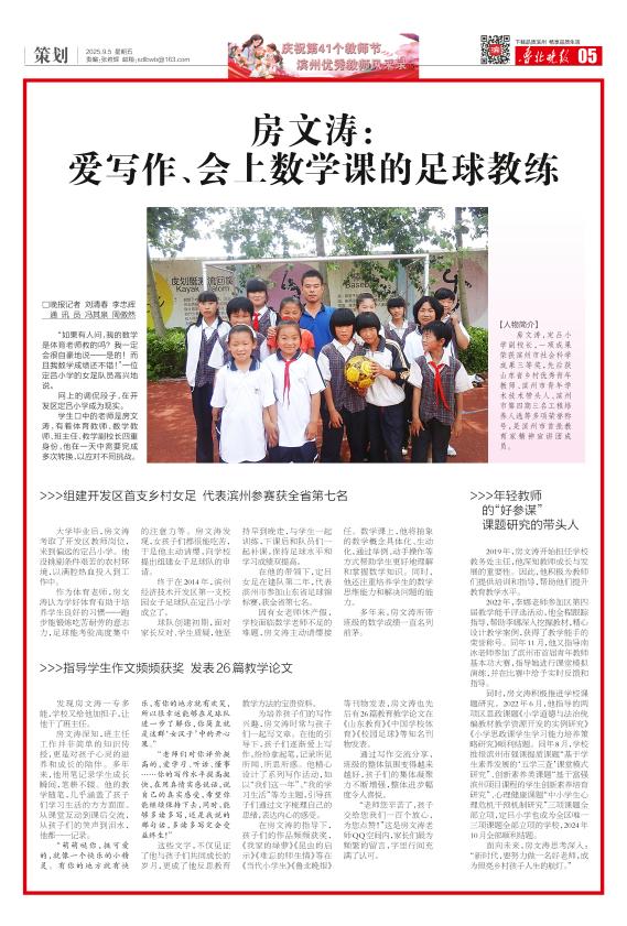 房文涛:爱写作、会上数学课的足球教练