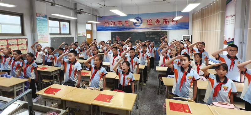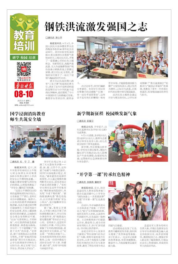 晚报滨州讯 9月3日,中国人民抗日战争暨世界反法西斯战争胜利80周年纪念活动举行。滨州实验学校2022级11班全体师生在观看气势恢宏的九三阅兵仪式后,开展了一堂震撼心灵的红色主题班会。当新型坦克、高超声速武器、无人作战集群等国产现役装备以钢铁洪流之姿驶过屏幕,班主任以此为契机,带领同学们展开了一场关于屈辱与崛起的时代对话。