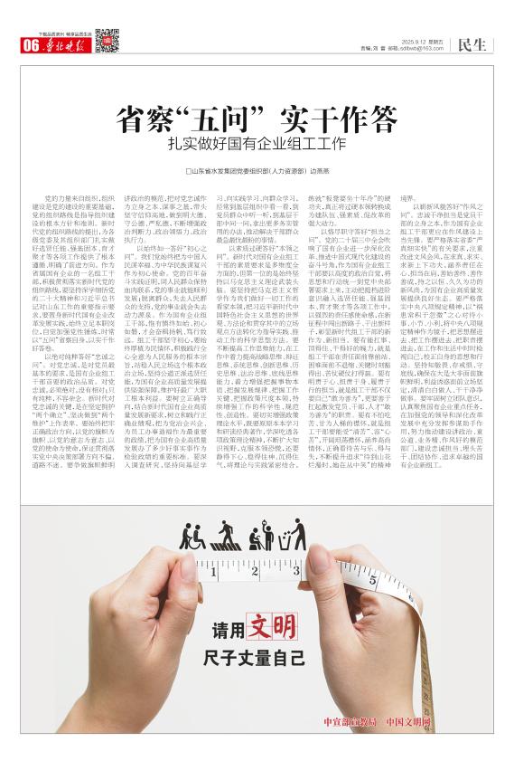 以崭新风貌答好“作风之问”。忠诚干净担当是党员干部的立身之本,作为国有企业组工干部更应在作风建设上当先锋。要严格落实省委“严真细实快”的有关要求,注重改进文风会风,在求真、求实、求新上下功夫,涵养责任在心、担当在肩,善始善终、善作善成,持之以恒、久久为功的新风尚,为国有企业高质量发展提供良好生态。要严格落实中央八项规定精神,以“祸患常积于忽微”之心对待小事、小节、小利,将中央八项规定精神作为镜子,把思想摆进去、把工作摆进去、把职责摆进去,在工作和生活中时时检视自己,校正自身的思想和行动。坚持知敬畏、存戒惧、守底线,确保在大是大非面前旗帜鲜明,利益诱惑面前立场坚定,清清白白做人、干干净净做事。要牢固树立团队意识,认真聚焦国有企业重点任务,在加强党的领导和深化改革发展中充分发挥参谋助手作用,努力推动建设讲政治、重公道、业务精、作风好的模范部门,建设忠诚担当、埋头苦干、团结协作、追求卓越的国有企业新组工。