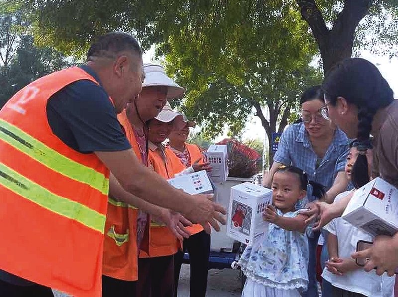 晚报无棣讯 在第41个教师节来临之际,无棣县第一实验幼儿园的老师们带领孩子们走上街头,将精心准备的礼物——爱心蔬菜包和水杯,亲手送到辛勤工作的环卫工人手中。