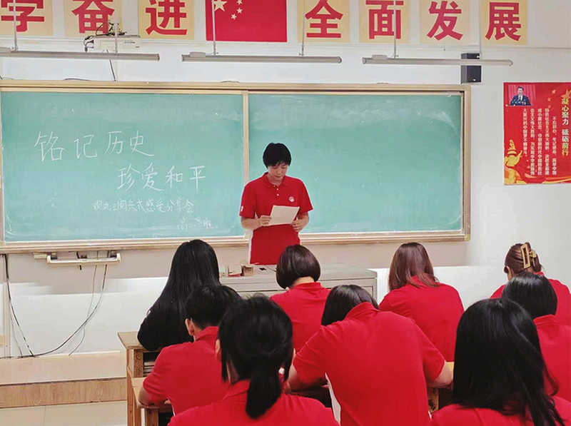 近日,市体校内气氛热烈而庄重,一场以“铭记历史,珍爱和平”为主题的特殊班会在这里举行。在这场班会上,同学们围绕九三阅兵开展观后感汇报,将心中的爱国热情转化为了奋进的动力,让青春的脉搏与时代的使命同频共振。