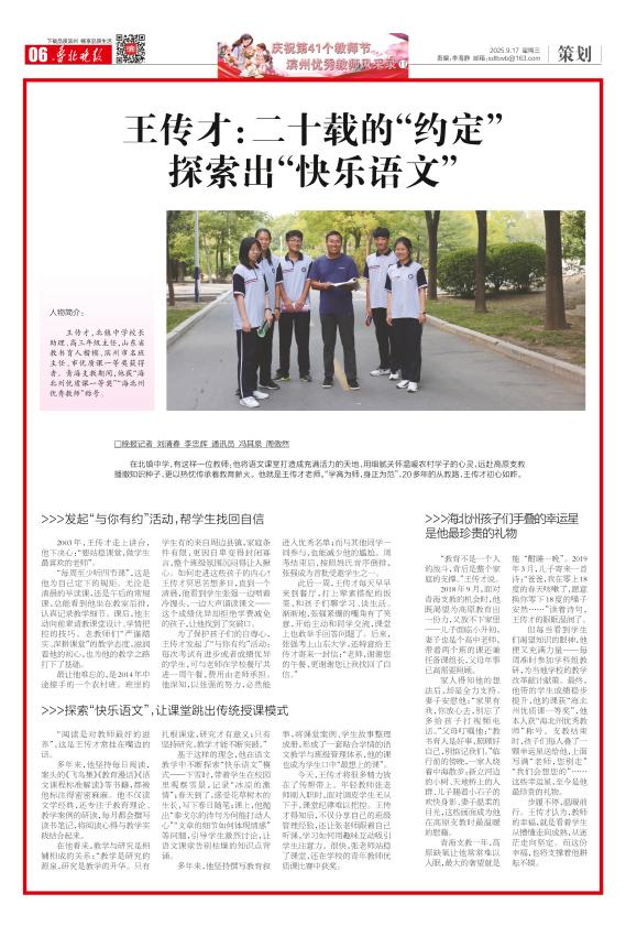 王传才:二十载的“约定” 探索出“快乐语文”
