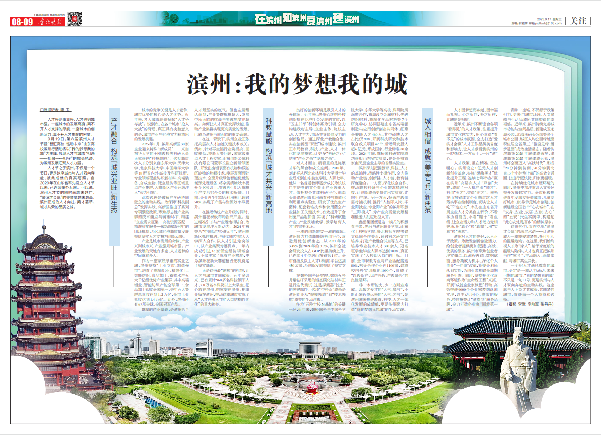 一个对人才满怀尊崇的城市,必定是一座活力涌动、未来可期的城市。“我的梦想我的城”不只是一句口号,更是滨州与人才双向奔赴的生动实践。这座愿与天下英才共成长、共圆梦的城市,值得每一个人期待和选择。