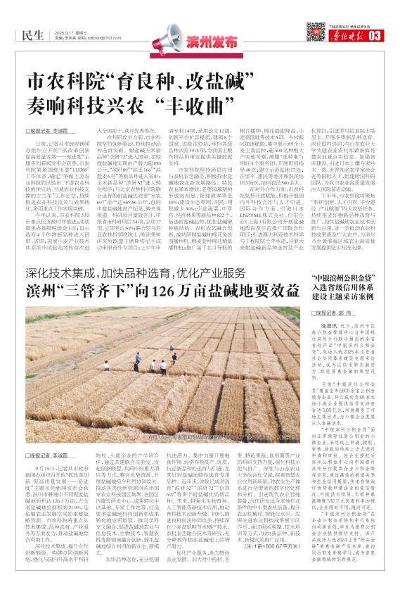 市农科院“育良种、改盐碱” 奏响科技兴农“丰收曲”