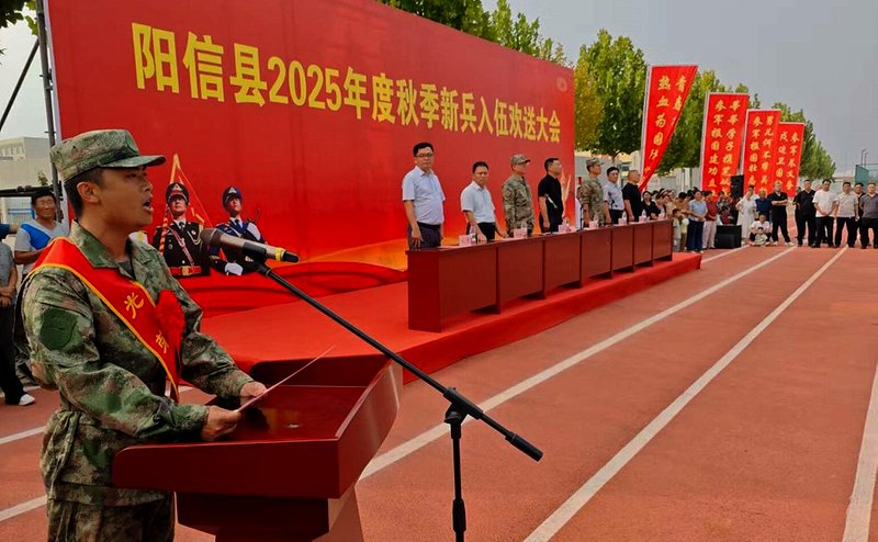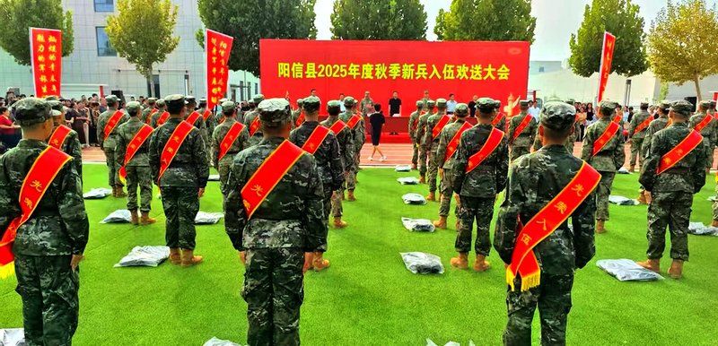 晚报阳信讯 金秋九月送新兵,保家卫国踏征程。9月15日下午,阳信县2025年秋季新兵入伍欢送大会在县民兵训练基地举行。