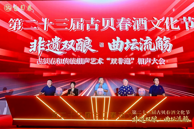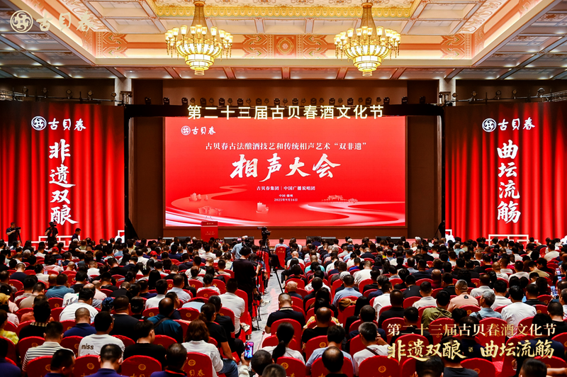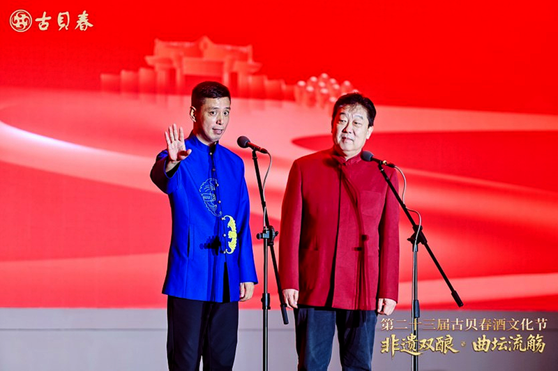 9月16日,第二十三届古贝春酒文化节盛大开幕。著名相声表演艺术家、国家级非遗传承人、古贝春品牌形象代言人赵炎先生携著名相声演员郑健、方清平、贾旭明等中国广播说唱团演员,献上了一台主题为“非遗双酿•曲坛流觞”的古贝春古法酿酒技艺和传统相声艺术“双非遗”盛典。