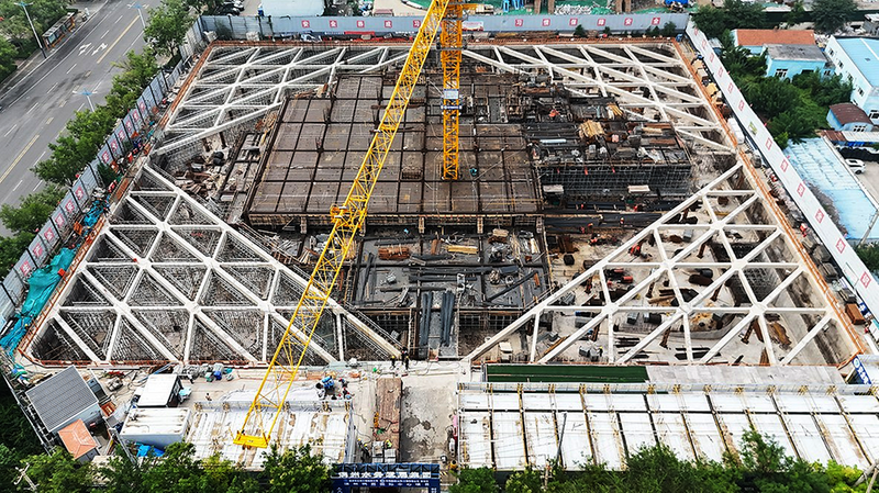 目前,负二层主体施工、外墙防水施工、基坑肥槽回填以及基坑传力带已完成施工,负一层部分工程仍在紧张施工中,全部地下部分建设预计于本月底前全部完成。