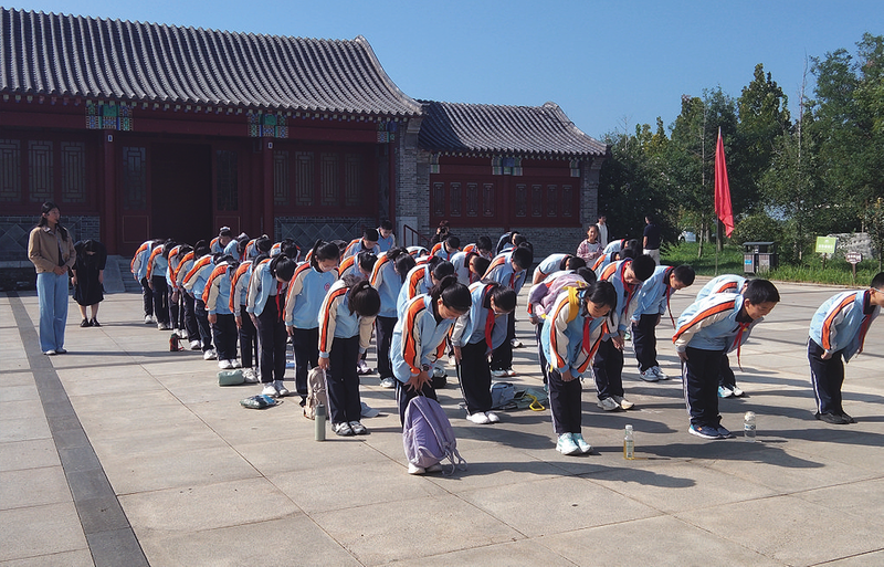 怀周祠是为纪念周恩来总理而修建的纪念场所,是重要的爱国主义教育基地。活动当日,同学们怀着无比崇敬的心情步入祠院,在总理汉白玉座像前,全体师生列队肃立,举行了简短而隆重的缅怀仪式。全体师生深深鞠躬,表达对周总理的无限哀思和崇高敬意。