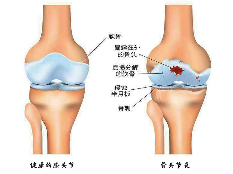 什么是膝关节骨性关节炎?膝关节的骨性关节炎大多数是因为关节表面内层软骨被磨损,出现了膝关节的疼痛、肿胀、活动受限,特别是上下楼、上厕所,蹲起的时候,膝关节需要弯曲动作的时候,就会感到膝关节的不舒服,做平路不一定会有症状。