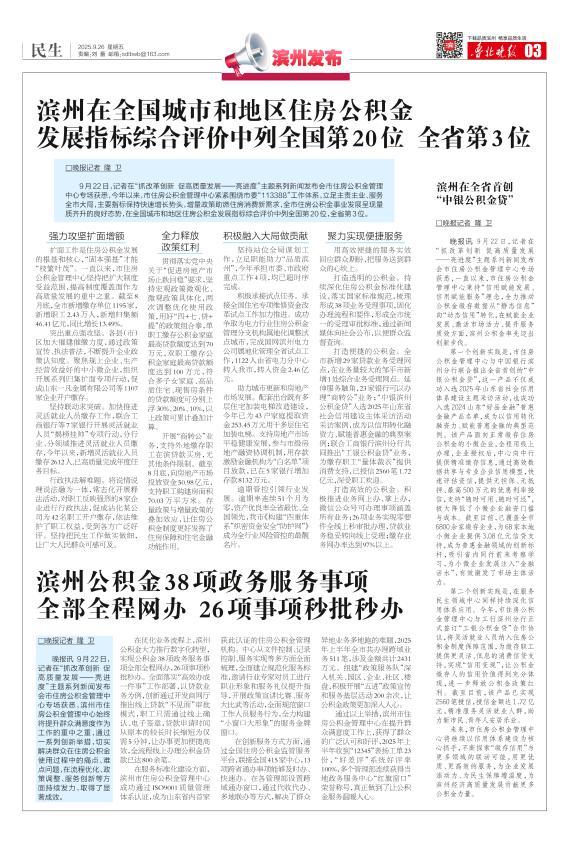 滨州公积金38项政务服务事项 全部全程网办 26项事项秒批秒办