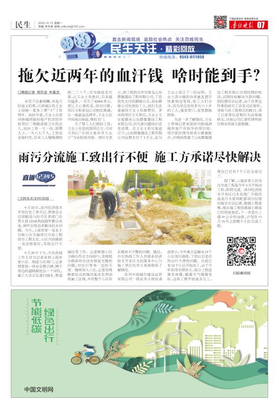 雨污分流施工致出行不便施工方承诺尽快解决