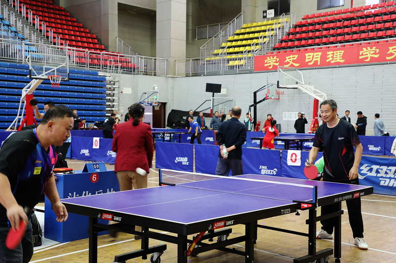 赛场上,气氛热烈而紧张。参赛选手们精神抖擞、身姿矫健,发球精准刁钻,搓球巧妙卸力,扣杀势如破竹,每一个动作都规范利落、尽显功底。清脆的球与球拍撞击声此起彼伏,伴随着观众阵阵喝彩,交织成赛场最动人的旋律。场外工作人员各司其职,严格把控赛程节奏,细致记录每一场赛事结果,以专业与严谨保障赛事高效推进;现场秩序井然,充分彰显了赛事的专业性与规范性。