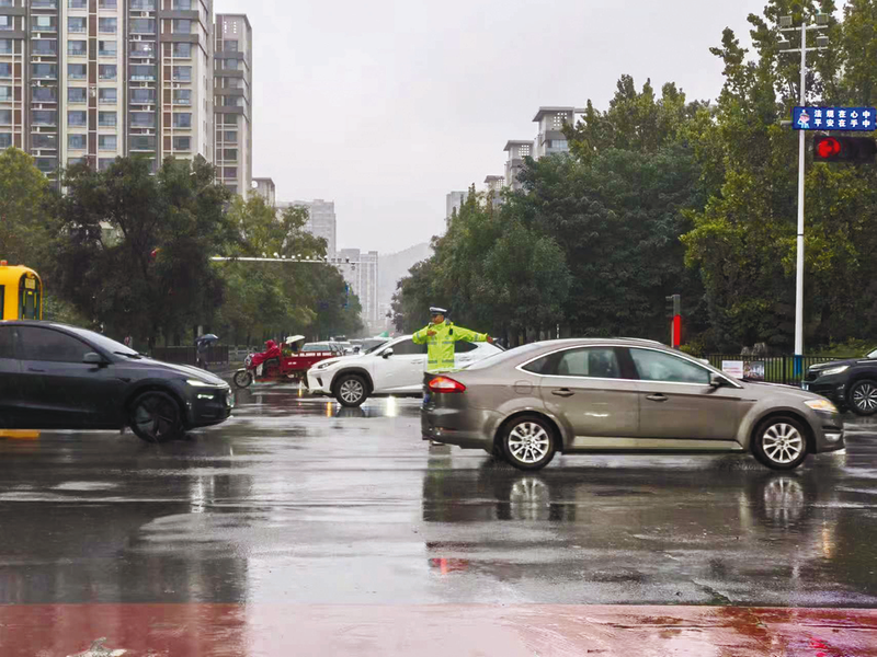 晚报讯 近日,邹平市出现连续降雨,道路湿滑,给人民群众出行带来不便。为保障雨天道路通行安全、有序、畅通,预防道路交通事故的发生,邹平市交警以雨为令,闻雨而动,迅速启动雨天应急预案,加大路面巡逻管控力度,排除道路交通安全隐患,全力为人民群众出行营造安全、有序、畅通的道路交通环境。