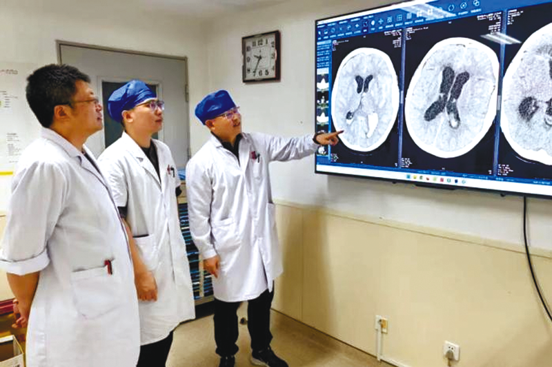 神经外科副主任医师周世聪、王宗宝及团队讨论后决定,针对患者情况选择腰大池腹腔分流手术治疗脑积水,并邀请胃肠外科副主任医师韩红波在腹腔镜下辅助置入腹腔端引流管。