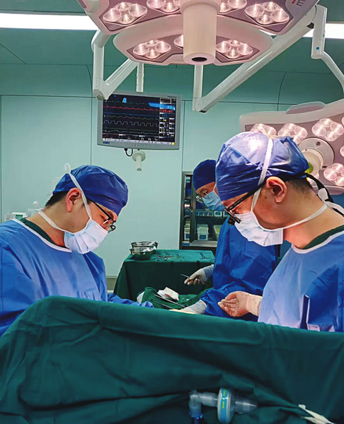 深夜1点,手术室的灯光骤然亮起,仿佛是照亮生命希望的曙光。一位急性A型主动脉夹层合并心包填塞、休克状态的患者被紧急推进手术室。此类疾病,犹如一颗随时可能引爆的“人体炸弹”,患者随时可能因主动脉破裂而猝死,生命危在旦夕。心脏大血管外科主任董圣军教授带领团队当机立断,迅速启动急诊绿色通道。医护人员们争分夺秒,迅速投入到升主动脉置换、全弓置换及象鼻支架植入术的紧张操作中。时间一分一秒地过去,手术室内气氛凝重,每一刀、每一针都承载着生命的重量。历经7小时的鏖战,早晨8时,手术终于顺利完成。当监护仪上那平稳的心跳曲线映入眼帘,手术室内压抑已久的欢呼声瞬间爆发,那是对生命重生的喜悦与庆祝。