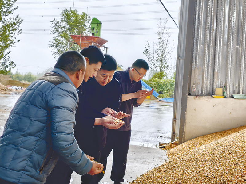 险情就是命令,保收就是责任。镇党委高度重视强降雨对农业生产的影响,第一时间启动应急响应机制,召开“三秋”抢收抢晒工作紧急部署会,明确目标任务、责任分工和时间节点。镇党委班子成员分片包干,全部下沉一线,实地查看灾情、了解困难、指导抢收,确保各项工作部署落到实处。同时,科学统筹各方资源,组织农技站专业人员深入田间地头,针对雨后抢收、湿粮保管、病虫害防治等关键环节开展“田间课堂”培训,指导农户科学抢收、正确晾晒、安全储存。此外,主动对接并协调辖区内具备烘干能力的企业和合作社,开辟粮食烘干绿色通道,及时对抢收回来的湿玉米进行集中烘干处理,最大限度降低产后损失。