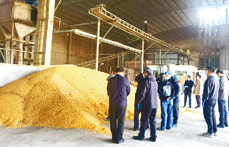 专家组先后到滨城区马家粮站、滨州市东瑞粮食贸易有限公司及山东盛源种业有限公司产后服务中心等处查看玉米收储、烘干情况,指导企业和农户科学储粮、分类烘干,做好质量安全监测,并讲解霉菌识别方法,免费提供食品级防霉剂双乙酸钠,现场进行1:1000比例(1kg防霉剂拌1000kg粮食)均匀混合演示操作。专家组提醒企业和农户,在使用食品级防霉剂双乙酸钠时若发现粮食已轻度霉变,需先剔除霉变部分,水分含量超过20%需优先使用防霉剂,强调“不可过量添加,不影响粮食食用安全”。