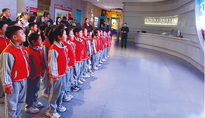 晚报滨州讯 近日,实验学校2024级九班师生前往滨州市人防科普教育基地,开展人防教育实践活动,以“别样课堂”强化学生防护本领、助力成长。