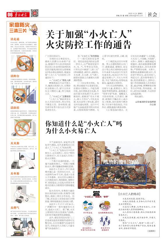 防范“小火亡人”,做好“三清三关”。为了您和家人的生命财产安全,赶快自查自纠,清除家中隐患。