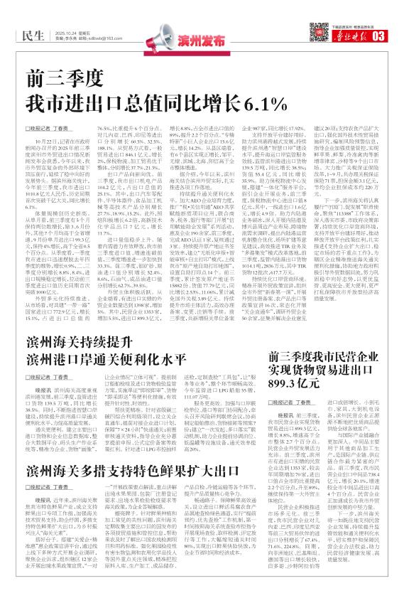 前三季度 我市民营企业实现货物贸易进出口899.3亿元