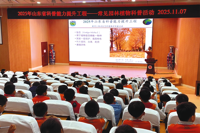 晚报滨州讯 近日,滨州实验学校报告厅内氛围热烈,山东航空学院罗永开博士为三年级22班学生带来一堂生动有趣的园林植物辨识科普报告,引领孩子们趣味解锁植物世界。