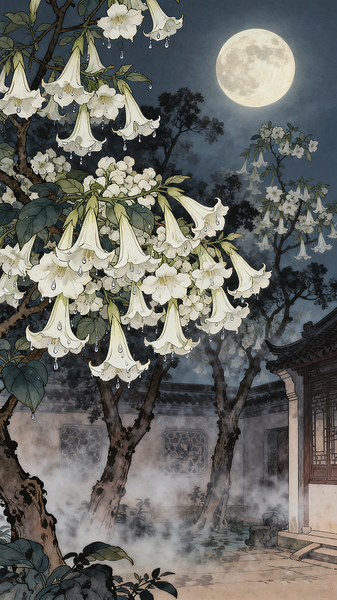 院内的梧桐花,更是一场视觉盛宴。一棵、两棵、三棵……月光下一片朦胧的紫白,还有淡淡的甜香。一串串或白或紫的梧桐花,呈喇叭状,簇拥在一起,向空气中吐露着馥郁的芬芳。忽而,一阵风缓缓而来,那一簇簇芬芳,在枝头飘来飘去,弥漫在漫漫的长夜。望着一树的繁华,你我都忍不住驻足欣赏。调皮的顽童蹦跳着,用杆子戳下一朵梧桐花,对着喇叭就吹,一使劲,花冠与花托分离了,往往还没等大人阻拦,他们就把花蕊塞进嘴里,慢慢吮吸着花蜜的香甜。