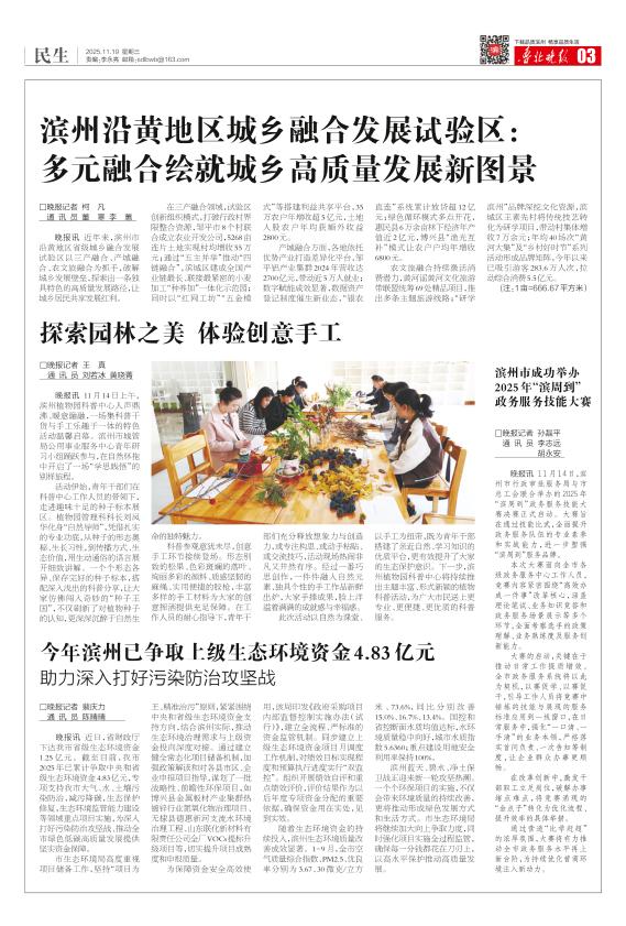 今年滨州已争取上级生态环境资金4.83亿元