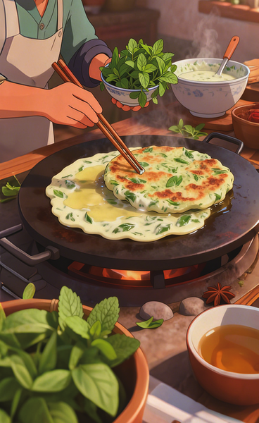 春天里,薄荷苗嫩得很,透着清香,可以采下来炸着吃、煎着吃,那份清凉的薄荷味,沁人心脾。记得小时候,水井沿上就长满薄荷,无需浇灌,只是打水时水桶滴沥的水滋养了它们,它们便一窝蜂地疯长起来,一团团,一簇簇,绿油油的一大片,有的还顺着井口往下钻,长长了就耷拉在井口。那时候生活条件差,缺衣少食,冬天不是白菜就是萝卜,食物单一,早就吃腻了,就等着开春,好用野菜打牙祭。惊蛰过后,荠菜、苦菜、野菠菜、野菊花次第露出头来,田野里多的是,大人小孩抢着挖。可这些野菜的味道都差不多,绝没有这薄荷的味道独特。母亲便在上工劳动之后掐下许多,无需择取,清洗几遍,调好面糊,让薄荷芽裹上面糊,鏊子上沥上猪油,夹上几筷子的薄荷面糊,成型后压扁,翻面,薄荷饼在热猪油的煎烙下渐渐变得焦黄,空气中飘散着薄荷独有的清香,那感觉真的无法形容,更不用说嚼在口中的味道了。这嫩嫩的薄荷,一个春天里可以反复掐好几茬,一直到谷雨前后薄荷茎里生了骨头。