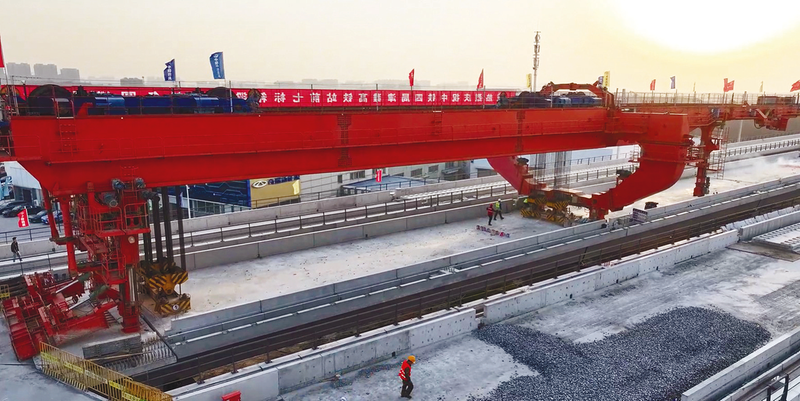 日前,由雄安高速铁路有限公司建设、中铁四局集团有限公司负责施工的津潍高铁站前七标段箱梁架设任务全部完成。据了解,为破解高铁施工中现浇作业风险高、质量把控难、周期长等难点,津潍高铁站前七标项目团队在全路首次提出了“一体架设式桥面附属设施工艺”,该工艺将传统高空作业工序搬到梁场与箱梁进行一体化预制,减少了现场高空作业风险;与梁体一同浇筑、养护与运输,保证了施工质量;实现“三墙”与梁体架设同时完成,施工效率提升30%以上。中铁四局津潍高铁站前七标滨州制梁场场长崔海珠说:“为确保本次箱梁架设任务圆满完成,我们要求架梁队伍严格按照架梁操作规程进行规范化、标准化施工,认真细化箱梁运输和架设任务,强化技术交底和人员教育培训,组织开展机械设备专项检查。同时,严格落实带班制、三检制,安排专职安全员全程盯控、测量人员精准测量,详细记录各项数据指标并及时分析调整,确保箱梁安全、有序、精准架设。”