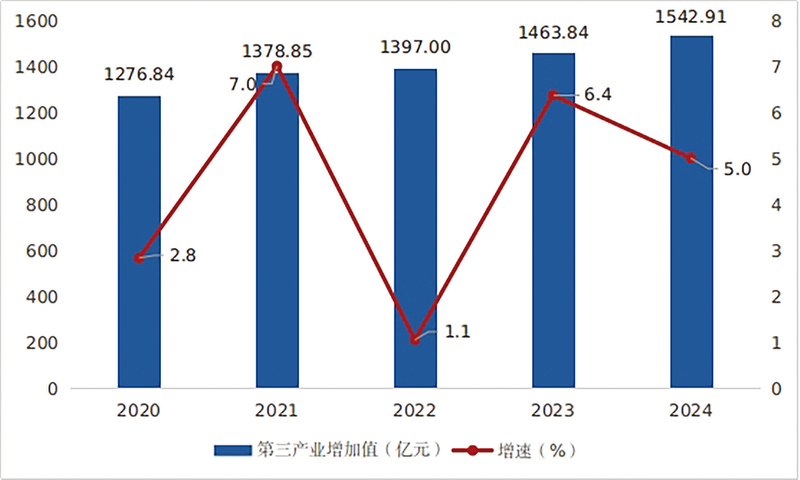 随着科技、信息的广泛应用及产业分工的不断细化,高技术服务业、科技服务业、新一代信息技术服务业迎来黄金发展期。2024年,全市规模以上高技术服务业实现增加值30.7亿元,比上年增长2.7%;全市规模以上新一代信息技术服务业实现增加值17.3亿元,比上年增长1.6%。租赁和商务服务业中的人力资源服务行业,2020年仅有15家规模以上企业,年营业收入6.53亿元,从业人员374人,至2024年企业数量达到56家,营收17.51亿元,从业人员3944人;信息传输、软件和信息技术服务业中的软件和信息技术服务行业,2020年仅3家规模以上企业,年营业收入1.87亿元,从业人员133人,至2024年达到15家,营收4.16亿元,从业人员277人。交通运输、仓储和邮政业中多式联运、冷链运输、仓储等新兴行业开始规模化发展,生产性服务平台、新能源技术推广、日用品租赁、教育辅助、医疗美容等现代服务规模以上企业实现从无到有。