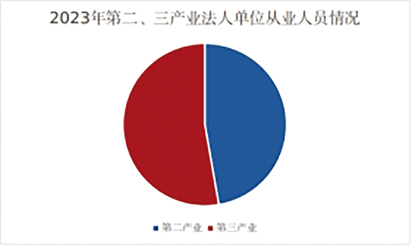 近年来,全市服务业投资持续处于高位,资产加速向服务业流动。2020-2024年第三产业投资占全社会固定资产投资的比重连续五年接近或超过50%,年均增长6.7%。2025年前三季度服务业投资继续保持扩张态势,其中,现代服务业行业租赁和商务服务业,科技行业中的专业技术服务业,交通行业中的装卸搬运和仓储业,以及信息行业中互联网和相关服务业等分别增长21.4%、32.2%、70.1%和13.9%。就业带动效果明显,人力资源加速向服务业流动。2023年(五经普年度),全市第三产业法人单位从业人员583545人,较2018年(四经普年度)增长53.4%,占二三产业的比重为52.7%,较2018年提升10.1个百分点。其中,信息传输、软件和信息技术服务业,租赁和商务服务业,水利、环境和公共设施管理业等现代服务业行业从业人数高速增长,较2018年实现翻番。
