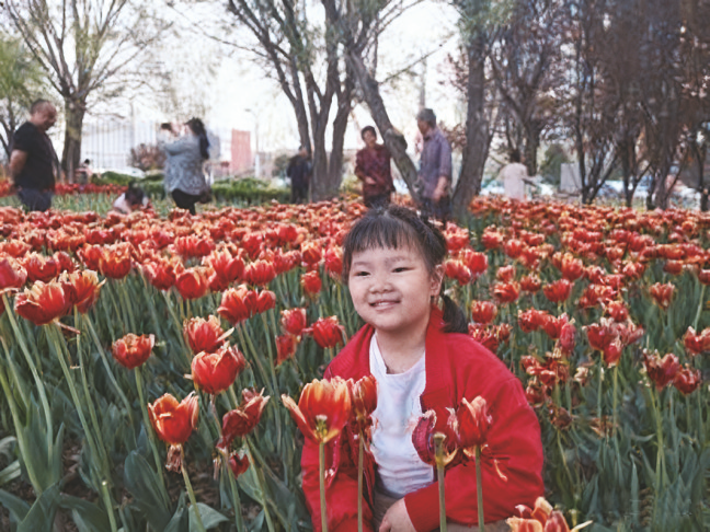 春天到了,我和爸爸妈妈一起去公园赏花。