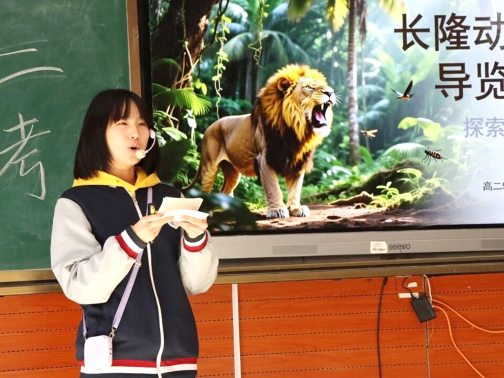 课堂气氛在第三组登场时瞬间欢腾起来。他们将广州长隆野生动物园“搬”进了教室,在介绍奇妙的动物世界与复杂的生态系统时,更有同学现场惟妙惟肖地模仿起动物的姿态与叫声。生动有趣的演绎引得掌声与笑声不断,课本上关于物种多样性及栖息地的知识,在轻松愉快的氛围中变得直观深刻。