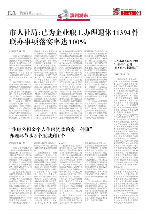 市人社局:已为企业职工办理退休11394件 联办事项落实率达100%