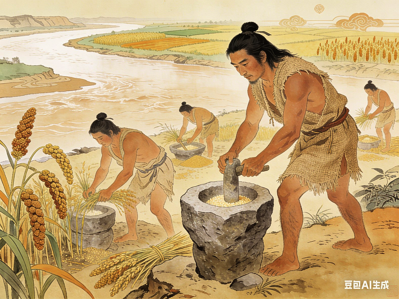 黄河流域是中国农耕文明的重要发源地,这里的地势、水源、土壤和气候条件非常适宜农业发展,早在距今一万年前后,以粟为代表的旱作农业作物就在黄河流域萌发,滋养了一方人。在黄河上游的马家窑文化遗址中发现粟等农作物遗存;在黄河中游的老官台文化、裴李岗文化、磁山文化中发现粟类作物遗存;在黄河下游地区,粟类作物遗存发现在后李文化、大汶口文化和龙山文化遗址中,这初步架构起了中华民族以农为本的社会经济结构,为中华民族农耕文明的发展奠定了坚实基础。