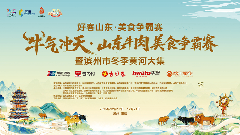 12月16日,记者从有关部门获悉,“牛”气冲天·山东牛肉美食争霸赛暨滨州市冬季黄河大集开幕式将于12月19日下午在阳信拉开帷幕。本次活动由山东省精品旅游促进会主办,滨州市及阳信县多部门联合承办,旨在以美食为纽带,融合赛事、市集、非遗、直播等多种形式,打造一场全民参与、热气腾腾的冬季文旅嘉年华。
