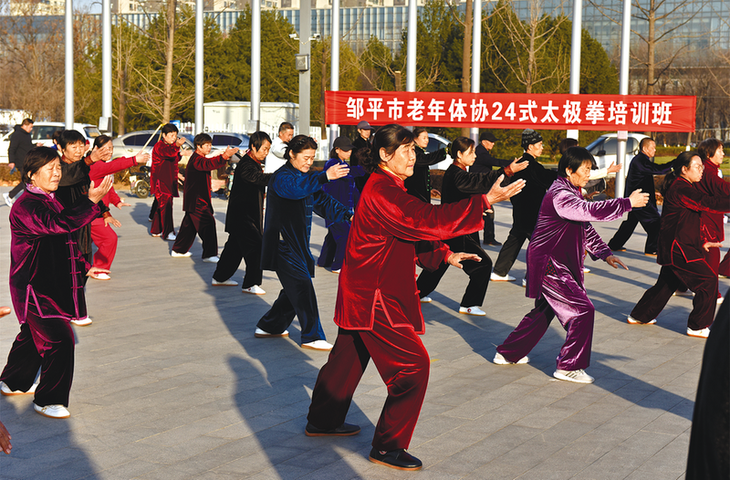 晚报邹平讯 近日,邹平市太极拳培训班开班。本次培训班由邹平市教育和体育局、邹平市体育总会主办,邹平市老年人体育协会承办,吸引了来自邹平市各街道社区的100余名太极拳爱好者参与。