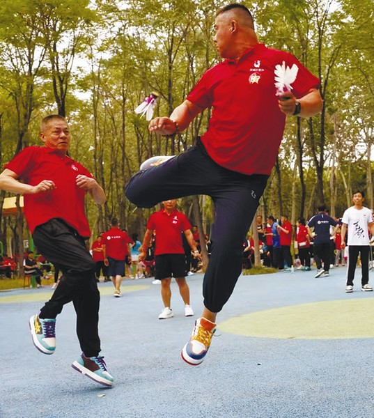 张国梁退休前深耕无棣盐业系统,亦是无棣海区海盐滩晒工艺第五代传承人。多年的非遗传承生涯,让他养成了对任何事情都一丝不苟、精益求精的行事准则。自与毽球结缘,他便携手爱人及一众毽友,从初识热爱到深耕推广,始终坚守初心,稳步推进毽球运动走传承与创新互补、表演与健身相融之路。这项运动巧妙糅合杂技的灵巧、舞蹈的优美,既具观赏性,又有竞技性,已然成为连接古今的文化纽带。从健身维度而言,毽球运动中的跳跃、抬腿、后打、转身等一系列动作,能全方位锤炼身体的协调性、柔韧性与灵活性,更助力增强心肺功能、提升机体免疫力,是惠及全民的优质健身之选。