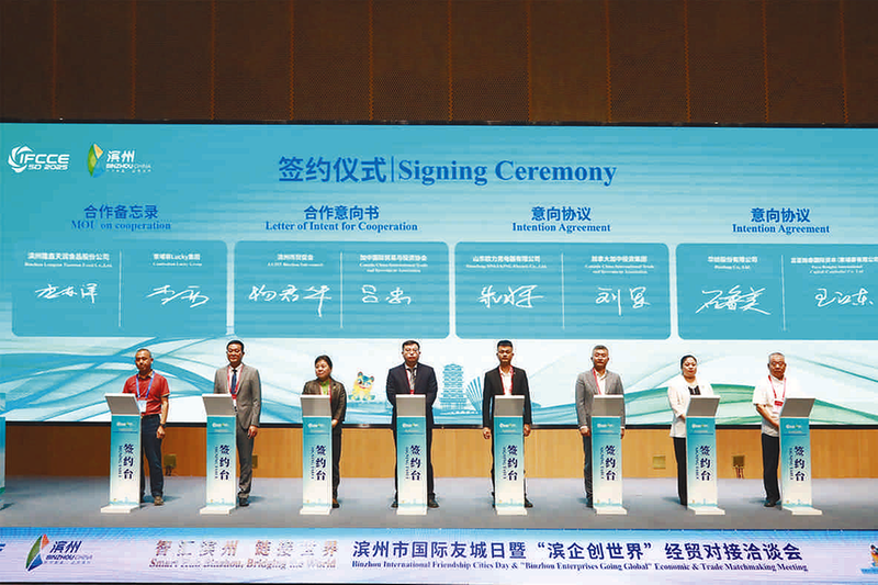 滨州市国际友城日暨“滨企创世界”经贸对接洽谈会上的签约仪式