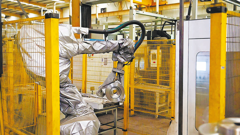 近日,记者走进山东惠宇汽车零部件有限公司精加工车间,一幅热火朝天的智能生产画卷展现在眼前。一台台智能机械臂整齐排列,宛如训练有素的“钢铁巧手”,稳稳地抓取亮银色的刹车盘产品。随着机械臂灵活地起落腾挪,一件件刹车盘被精准送至每一道工序:探伤仪的电磁感应扫描信号快速扫过工件表面,排查每一处细微瑕疵;接触式高精度测量仪精准识别0.001毫米以内的公差数据,严格检测各项工艺尺寸;自动激光打标机迅速完成产品可追溯信息刻印。从抓取加工到转运检测,整个流程无缝衔接,智能化制造车间生产流畅有序,尽显科技魅力。