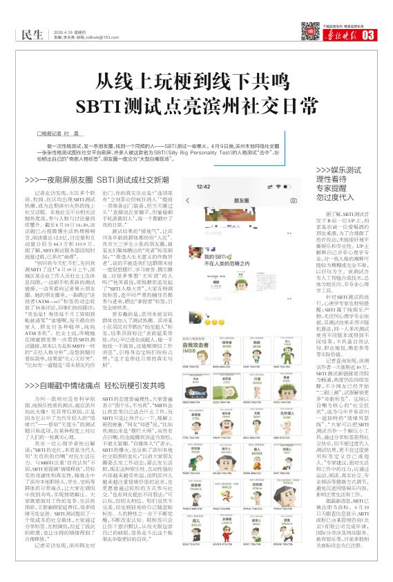 从线上玩梗到线下共鸣 SBTI测试点亮滨州社交日常